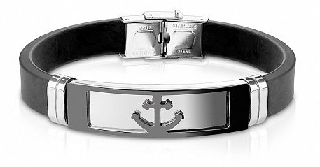 Браслет с якорем на пластине Spikes предлагается в 3 вариантах расцветки. Это может быть комбинация цветов, или в отдельности – черный, золотистый и серебристый. Украшение сделано из высококачественной ювелирной стали, которая не подвержена коррозии. Она не темнеет и превосходно переносит механические повреждения. Ремешок браслета вырезан из черного каучука. Длина аксессуара составляет 207 мм.