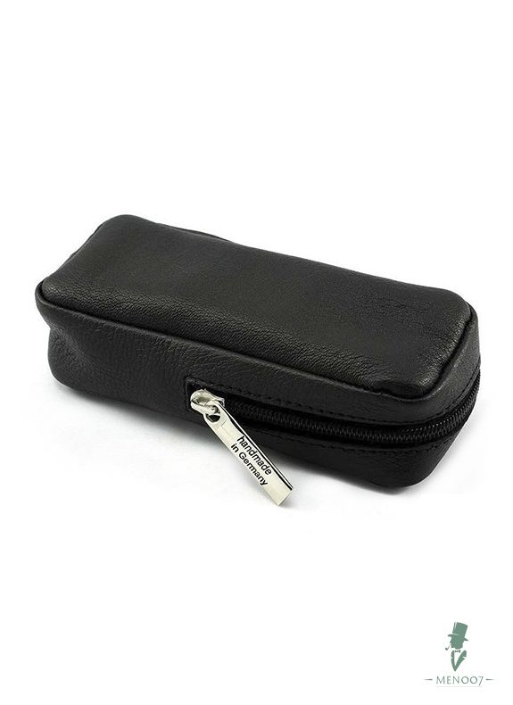 Черный кожаный чехол Merkur имеет размер 11х5х2,5 см. Предназначен для Т-образных станков с короткой рукоятью. Бритва надежно фиксируется внутри и закрывается на молнию. Удобная большая застежка легко открывается и никогда не вызывает никаких осложнений!