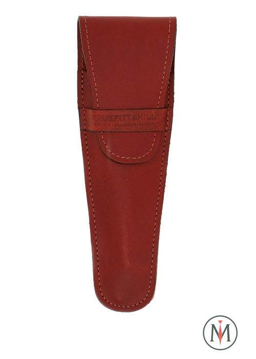 Кожаный чехол для бритв Truefitt & Hill коричневого цвета сделан под форму моделей типа Wellington и Carlton. Застежка чехла фиксируется в кожаном ремешке. Этот вид фиксации – очень простой и надежный, поэтому никогда не подведет. Бритва мягко входит и хорошо удерживается внутри.