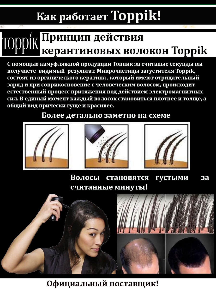 · камуфляж не работает там, где вообще нет волос, — на гладком облысевшем участке волокнам просто не за что будет зацепиться. Так что средство подойдет только для маскировки редко растущих волос, начинающихся залысин или заметных проборов.