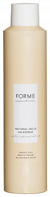 Forme Essentials Лак для волос средней фиксации Natural Hold Hairspray не только фиксирует прическу, но и подчеркивает красоту ваших волос, благодаря маслу семян овса и УФ-фильтрам, которые ухаживают за волосами и защищают их.