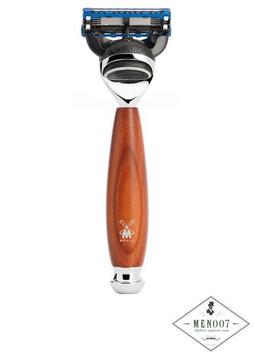 Современная бритва MUEHLE VIVO, FUSION, СЛИВА имеет оптимальную форму. Слегка зауженная к краям, она позволяет держать станок во влажных руках без неприятных последствий. Модель совместима с Gillette Fusion: лезвия идеально подходят к бритве, поэтому со сменой старых на новые проблем не возникнет – это однозначно.