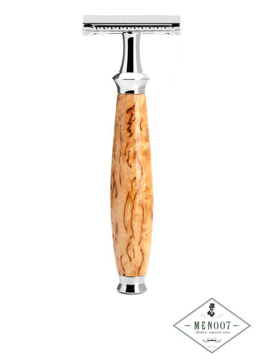 Т-образная бритва Muehle Purist, каповая береза непременно понравится за свой неординарный внешний вид и эргономичную форму. Изящная и гладкая ручка прослужит максимально долго, благодаря нанесенному сверху антикоррозийному покрытию. Лезвия легко заменить, а плавающая головка обеспечит максимальную гладкость кожи.