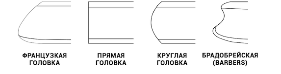 – т-образная бритва с закрытым типом головки. Это строение максимально безопасное для любителей классического бритья. (он же прямой срез, он же closed comb) Особенность их конструкции предполагает использование безопасных лезвий, поэтому использовать подобные приспособления можно даже начинающим в деле бритья. Такие станки подходят тем, кто бреется не чаще двух раз в неделю. К недостаткам приспособлений можно отнести недостаточно качественное снятие жесткой щетины, устройства с закрытой головкой не всегда способны обеспечить полную очистку лица от волосков.