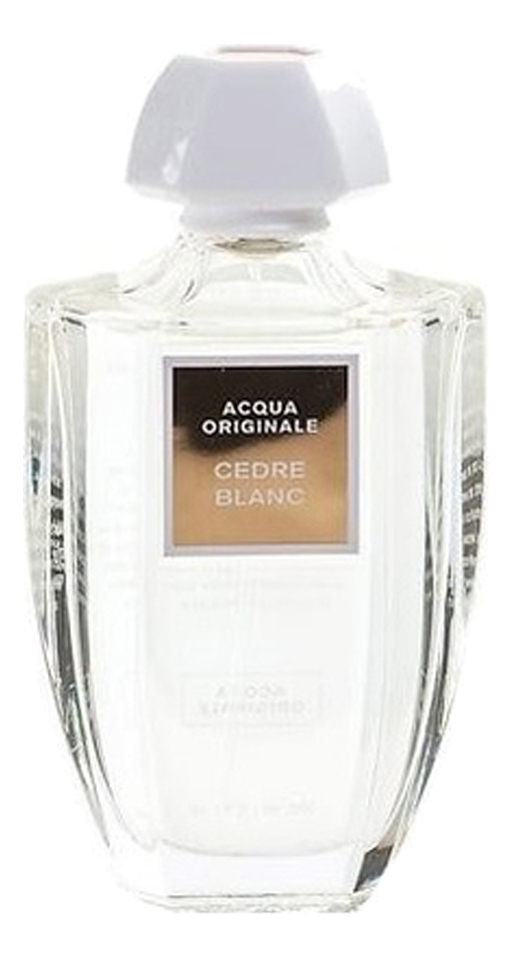Флакон Cedre Blanc в объёме 100 мл, изготовлен из прозрачного стекла,увенчан белым колпачком и украшен золотистыми элементами. Все флаконы коллекции"Acqua Originale" оформлены в одном стиле.
