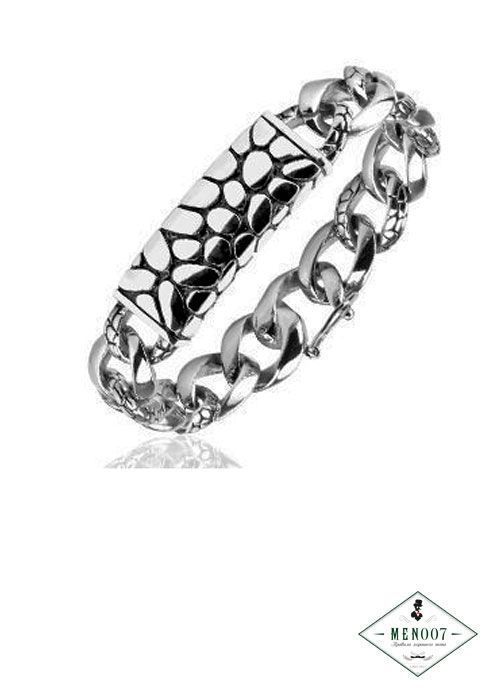 Браслет с вставкой текстуры панциря черепахи Spikes сделан из высококачественной ювелирной стали. Она не боится намокнуть или контакта с твердыми поверхностями, поскольку не ржавеет и обладает высокой жесткостью. Для соединения концов браслета используется надежный карабин. Он исключает вероятность потери аксессуара. Длина браслета составляет 222 мм, а ширина – 14 мм. Толщина звеньев – 6 мм.